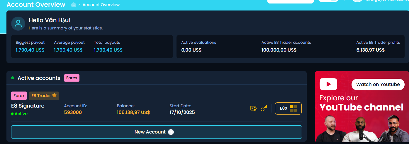 Tên quỹ: E8 Markets ( Tên Công Ty E8 Funding LLC )