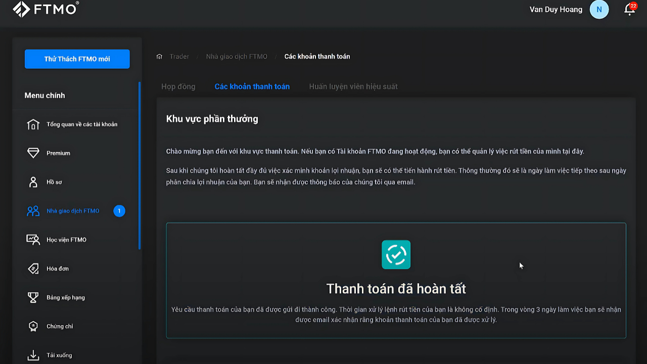 - Chờ xử lý: FTMO sẽ xem xét yêu cầu của bạn và thông báo qua email sau khi quá trình xử lý hoàn tất, thường trong vòng 1-2 ngày làm việc