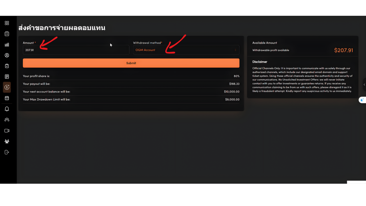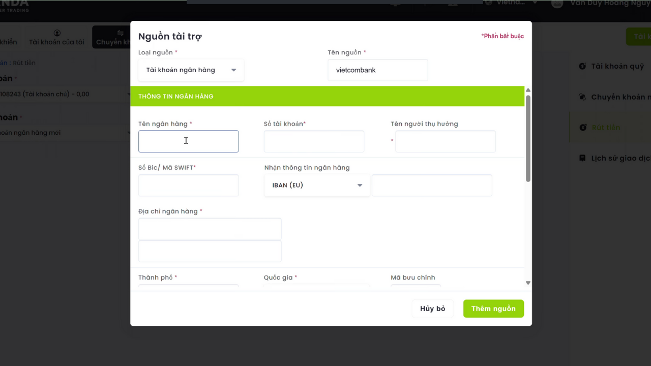Phần 1 : Thực hiện rút tiền từ quỹ OANDA về OGM