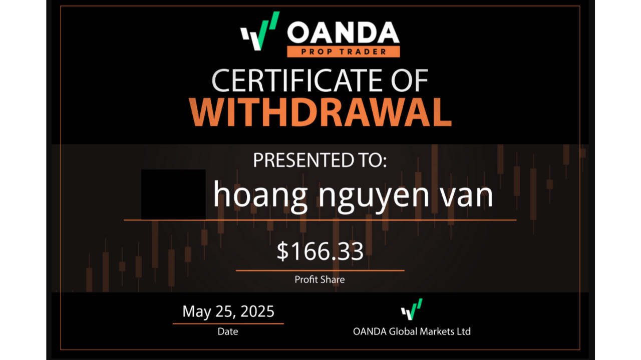 Đồng thời các bạn sẽ nhận được chứng chỉ rút tiền từ quỹ OANDA