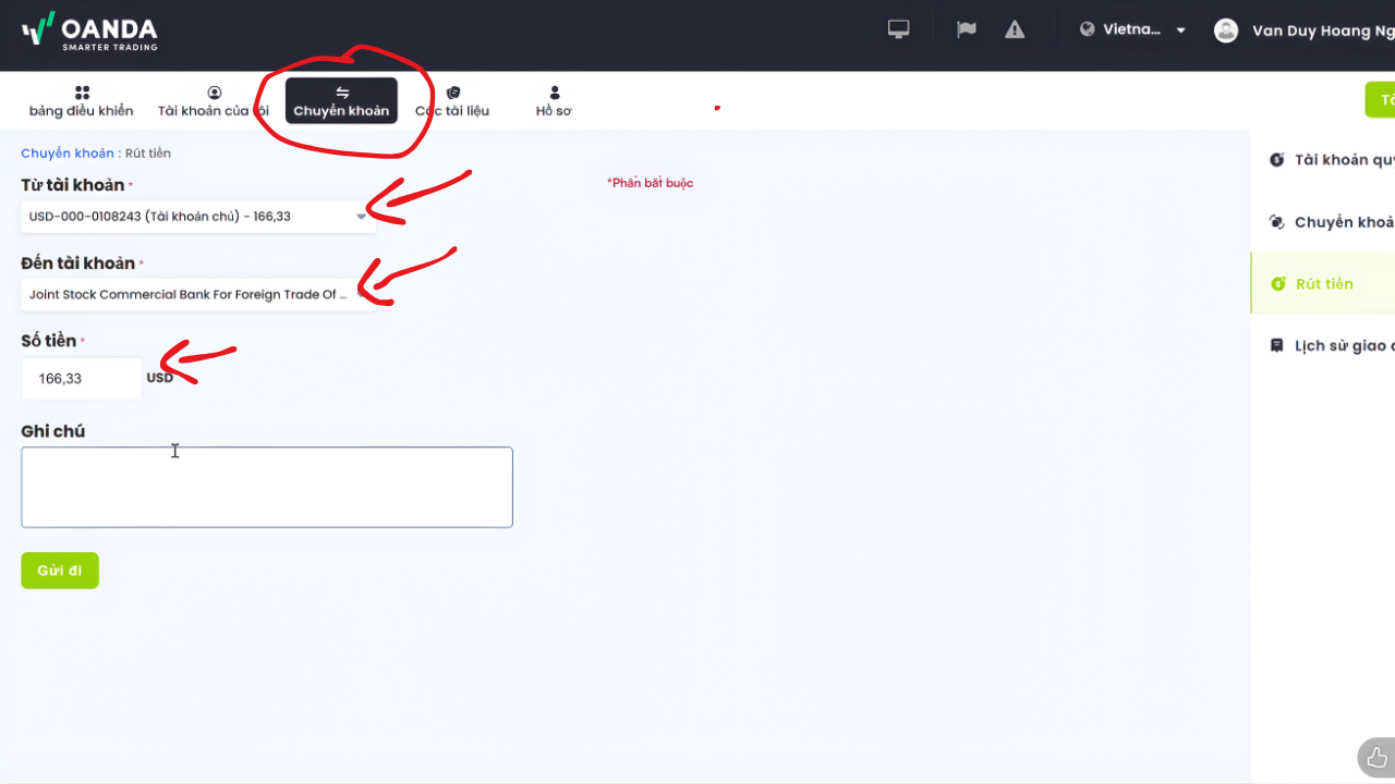 vậy là hoàn thành xong các bước để rút tiền từ OANDA về