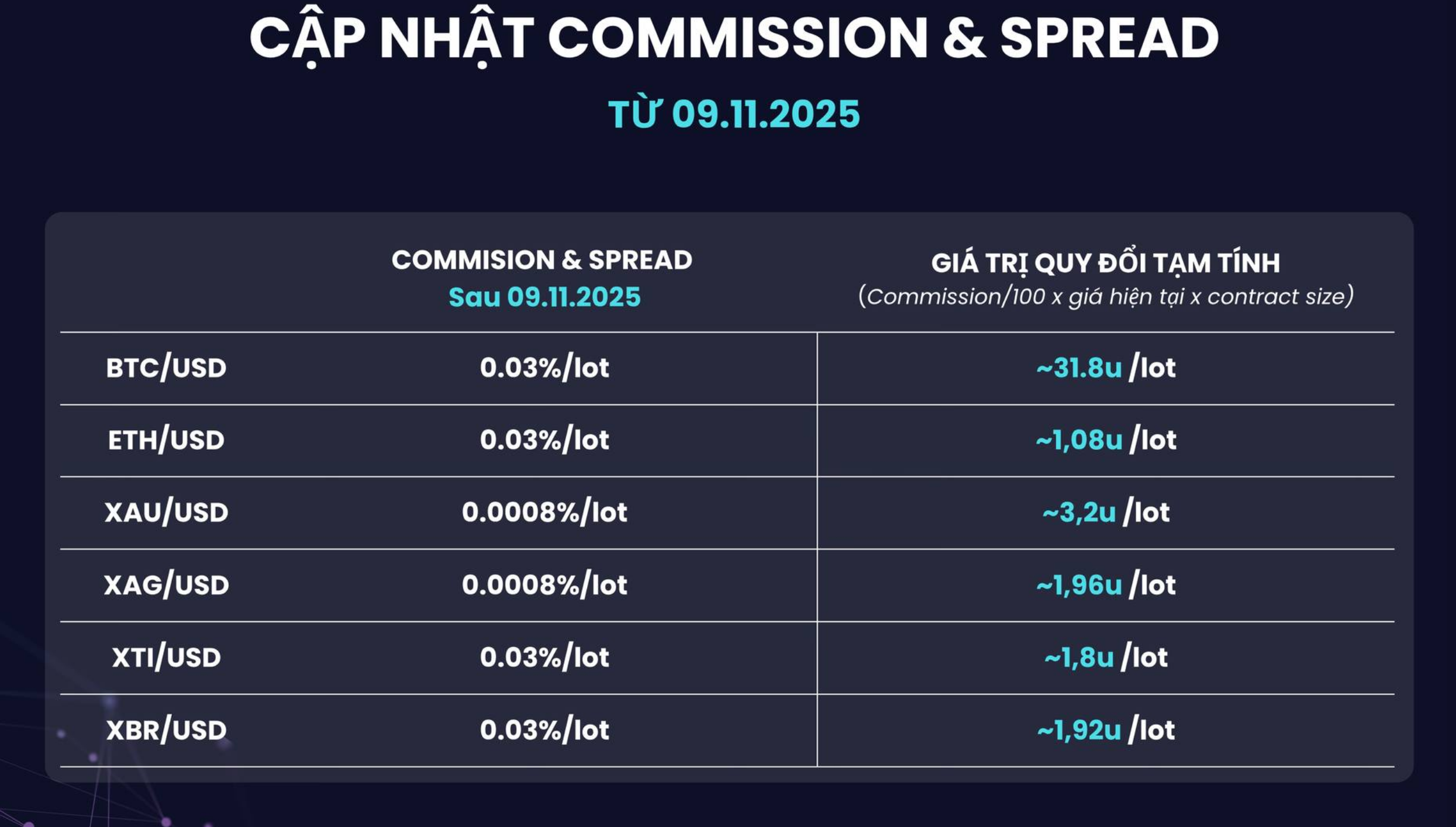 - Phí Commission : 4$ / lot đối với tất cả các mã FX .