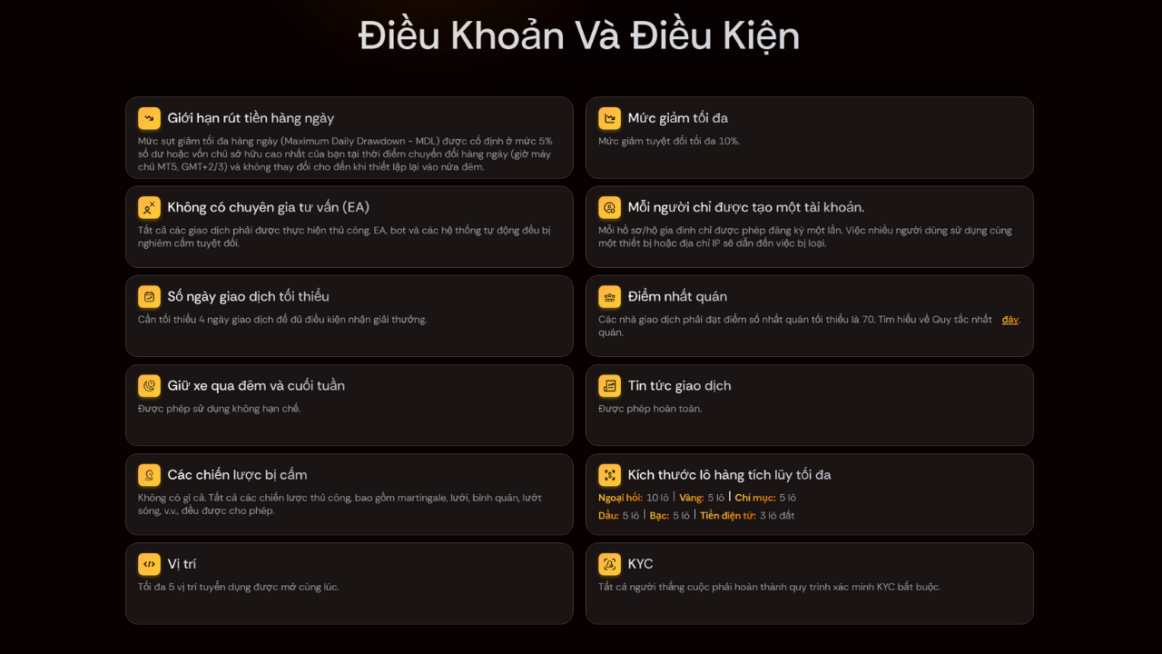 Phần này giới thiệu các cuộc thi trading miễn phí từ các quỹ , mang đến cơ hội trải nghiệm cạnh tranh và giành phần thưởng tài khoản quỹ.