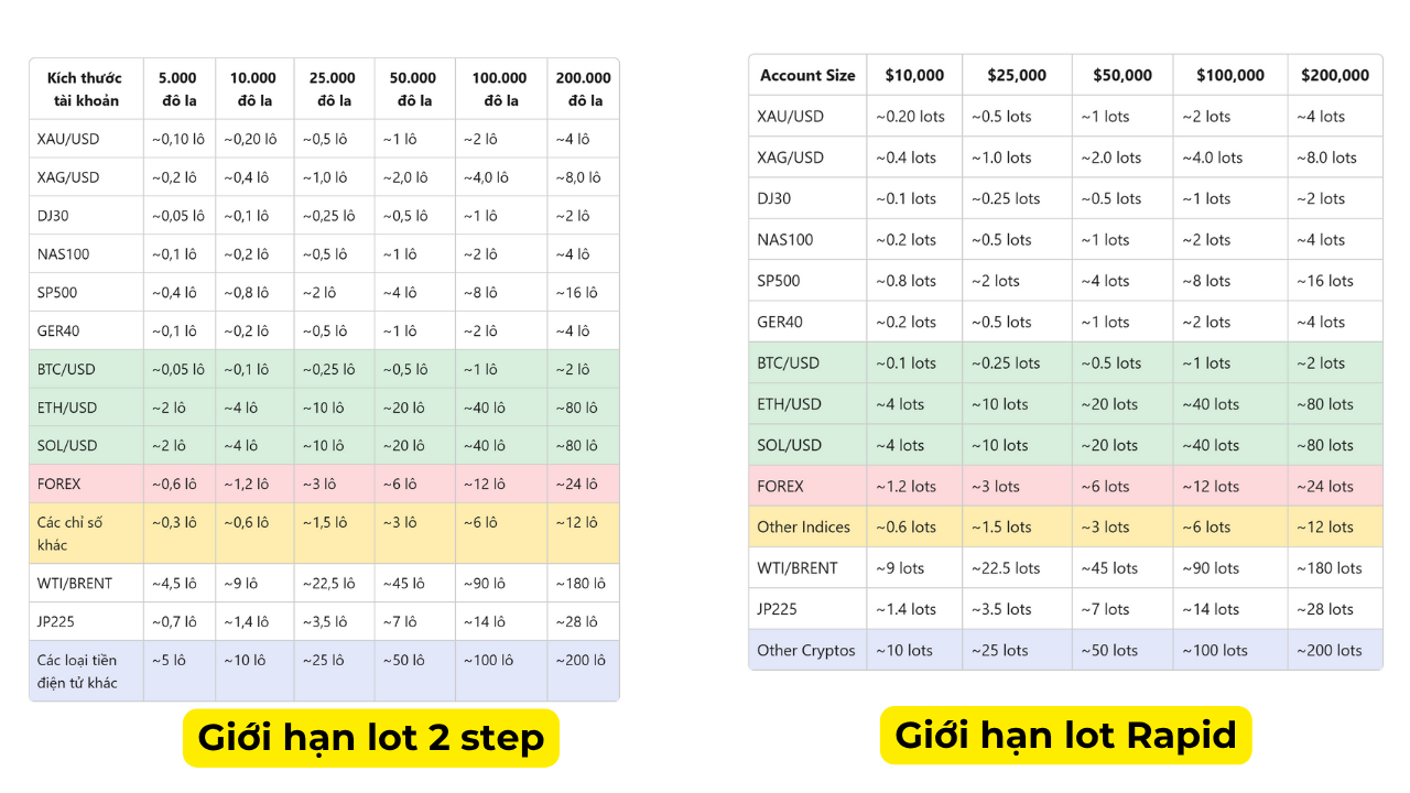 Quy mô tài khoản | Rapid | 1-Step |