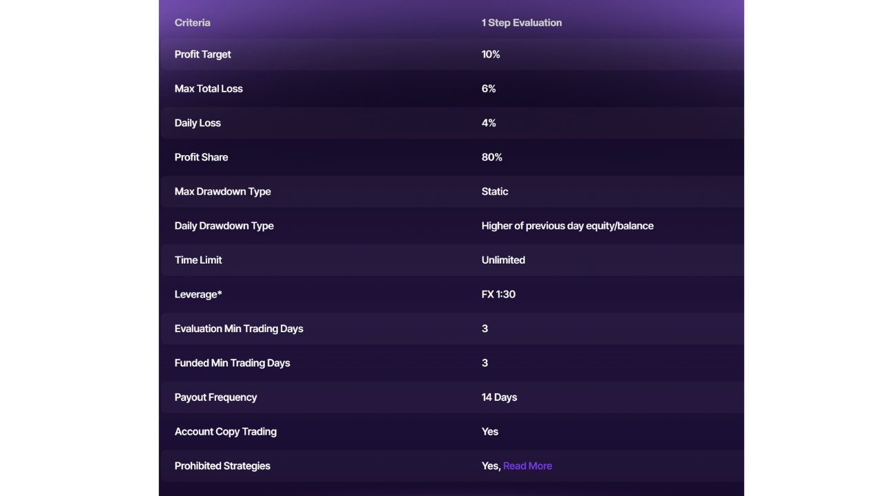 3 quy tắc chính trên tài khoản cấp vốn 1-Step bạn cần nhớ: