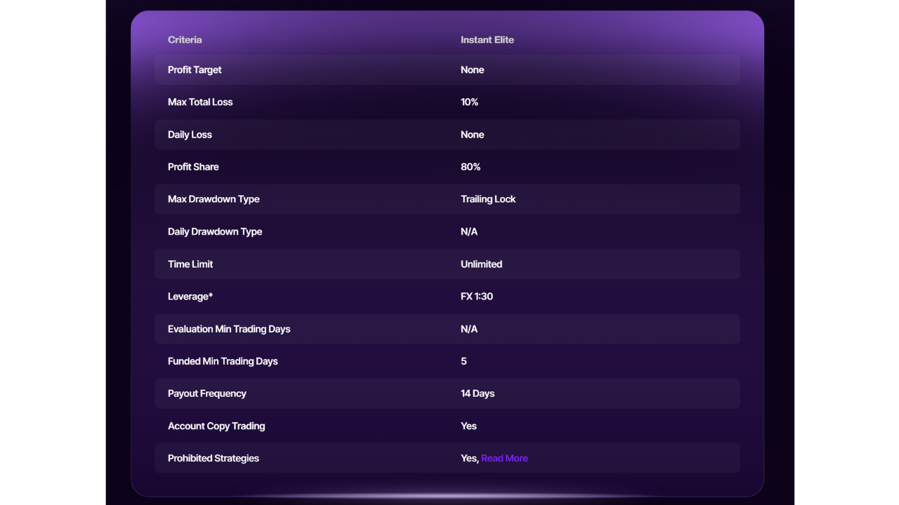 Hiện tại Blueberry Funded cho phép số vốn tối đa với mỗi nhà giao dịch là $400,000.