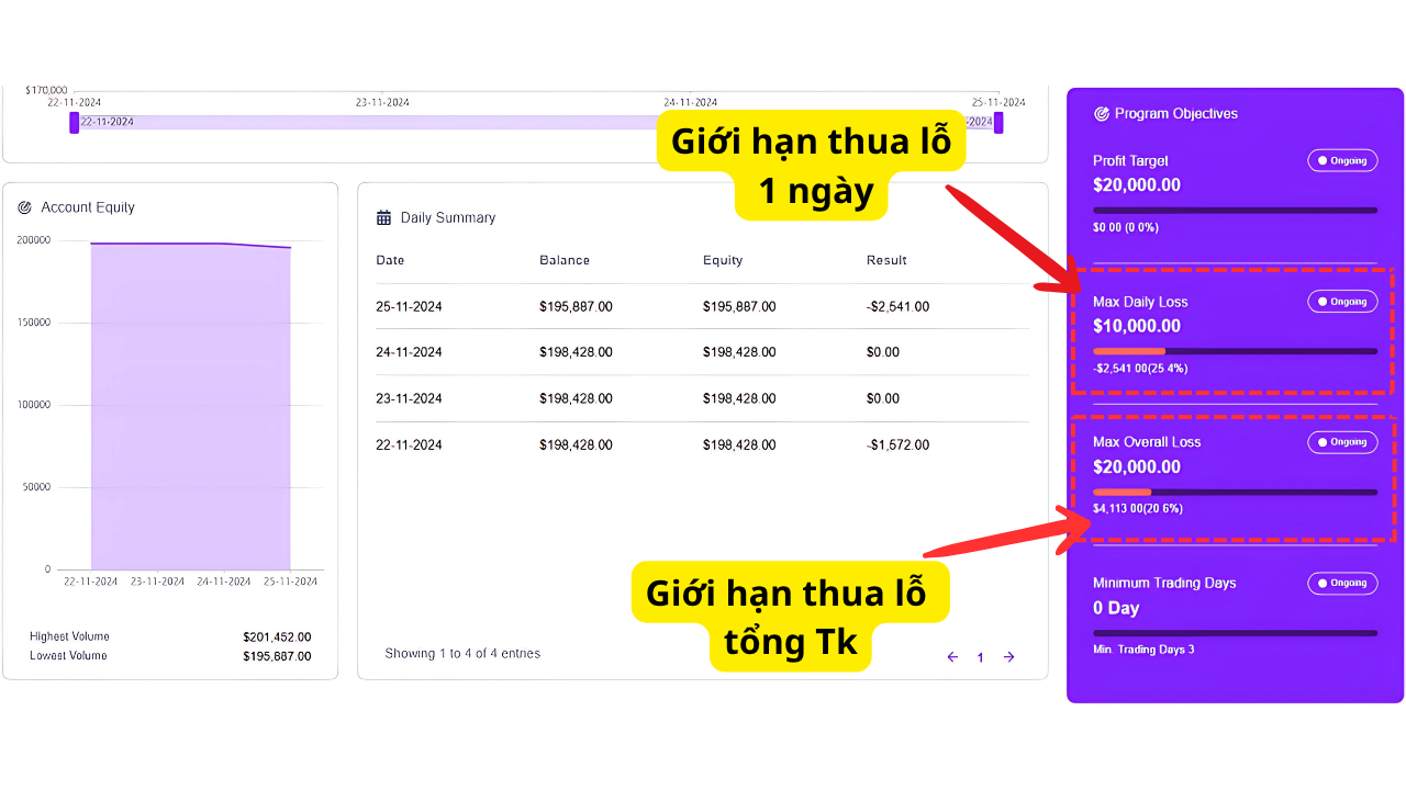 Ở mọi thời điểm, bạn không được phép để Equity của tài khoản sụt giảm dưới mức $94,000.