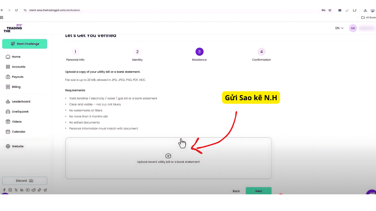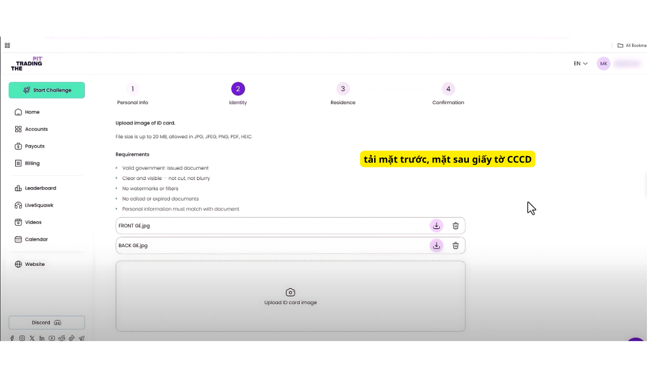 Bước 2: Điền thông tin cá nhân và tải Tài liệu xác minh danh tính và địa chỉ