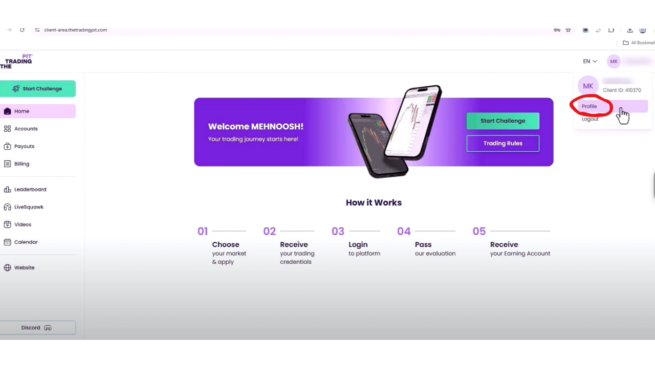 - Đăng nhập vào tài khoản The Trading Pit của bạn.
